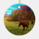 Brown Horse in a Rainbow coloured field Ceramic Ornament