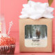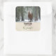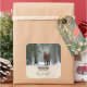 Handmade with love stickers with a photograph of a brown horse with a long white scruffy mane. Standing in a forest with snowflakes falling all around.