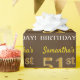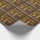 This wrapping paper design features a message like "Samantha’s 51st BIRTHDAY!", with the "51st" having a faux/imitation gold-like colour appearance. The name can be personalized, and the background is coloured brown. It could perhaps be used when wrapping gifts being given for somebody’s fifty first birthday. [~Z0000180]