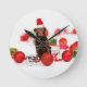Brown Labrador Dog Christmas w Gifts Santa Hat Round Clock