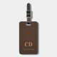 Brown faux leather print as background. Personalize and add your monogram letters and full name on the front. Your contact information on the back. Golden text.