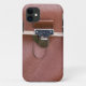 iPhone 5 Barely There case with a look of a front of a brown leather portfolio, with a clasp. Customizable.