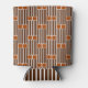 This can cooler has a geometric design of five lines with two boxes on top repeated over the design.