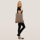 This tote bag has a mid-century modern design of vertical lines with rectangles above, both in shades of brown, repeated over the design.