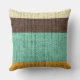 Brown Mint Yellow Stripes Burlap Linen Rustic Jute Throw Pillow