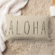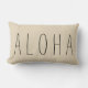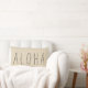 Our tropical typography pillow in pink and dark black lettering in a Aloha Hawaiian greeting in dark grey-blue lettering is perfect for your room.