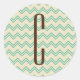 Brown Monogram on Turquoise Green Chevron Pattern Classic Round Sticker