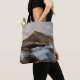 BROWN MOUNTAIN NEAR BODY OF WATER UNDER CLOUDY SKY TOTE BAG