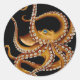Brown Octopus Blue Eye Black Art Classic Round Sticker