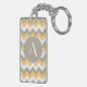 Classy and Elegant brown, orange and white chevron pattern background. Personalise with name initial in brown cicle.