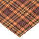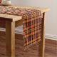 Table runner in a Plaidwerx original fall plaid pattern in bright orange, russet brown, and yellow, with black and grey highlights.