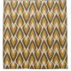 The 1970s meets the Art Deco age in this geometric print. Teardrop shaped graphics in brown, avocado green and orange are set against a cream or off-white coloured background on this pattern.