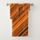 This towel set design features an abstract pattern of squares coloured various shades of colours like brown and orange. [~Z0000105]