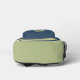 Sac à dos mignon pour les enfants avec un drôle d'ours brun mangeant un énorme cône de crème glacée. Il est composé de 3 couleurs principales (bleu, vert et jaune) dont une motif à rayures à l'avant. Personnalisez avec les initiales de l'enfant. © ArianeC Illustrations-Tous droits réservés