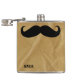 Fun flask done in graphics of a brown paper bag look, with a big black moustache, on the front. Black stencil style text, on the bottom front, is ready to personalize. Great gift idea for any guy and especially great as a wedding party gift for groomsmen.