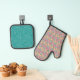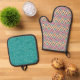 BROWN PINK ORANGE TURQUOISE GEOMETRIC PATTERN OVEN MITT & POT HOLDER SET
