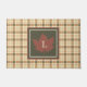 Welcome fall with this custom plaid pattern doormat. Mat features beautiful autumn colours -- tan, brown, green, burnt orange, and yellow. A traditional maple leaf and your family monogram initial completes the look.