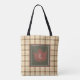 Brown Plaid Pattern Fall Maple Leaf Monogram Tote Bag