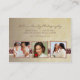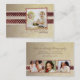 Ces cartes de visite chics ont mis une touche d'antiquité avec le ruban et la dentelle de pois amusants. Cheeky Paperie a vraiment mis en avant son meilleur côté créatif lors de la conception de ces cartes! Personnalisez avec jusqu'à 4 de vos propres photos, ou utilisez celles fournies. Vous pouvez également utiliser l'exemple de logo sur l'avant comme flair supplémentaire, ou remplacer par votre propre logo. REMARQUE : Si vous remplacez les photos, n'oubliez pas qu'elles seront assez petites sur le produit fini. Utilisez des photos simples sans beaucoup de détails pour assurer des images claires/lisibles.