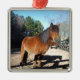 Brown pony turquoise Sky Metal Ornament
