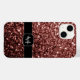 Brown Red faux Glitter sparkles Monogram Case-Mate iPhone Case. Personalize faux sparkly girly iPhone case with your initial and name. Beautiful glamourous reddish earthy brown shiny glitters sparkles. Photo of Red Brown sparkles not actual glitter!
