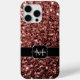 Brown red faux glitter sparkles Monogram iPhone 15 Case. Personalize Sparkly iPhone case with your initial and name. Beautiful girly glamourous shiny glitters sparkles. Photo of sparkles not actual glitter!