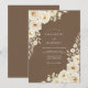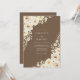 This design features a warm, romantic atmosphere with creamy white roses and delicate foliage artfully arranged. The earthy brown background provides a sophisticated and intimate feel. A perfect choice for an elegant autumn or rustic-themed event.