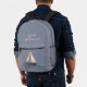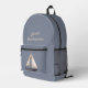 Brown Sailing Boat and Name on Gray Printed Backpack