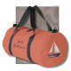 Brown Sailing Boat and Name on Red Duffle Bag
