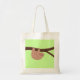 This whimsical design of a brown smiling sloth with heart nose hanging from a tree on a cute bag makes you dream of a slower pace, enjoying the moment and tropical places. The brown line drawing is placed on a light green background but this colour or any text can easily be customized. The design works well for adults but is kid friendly as well and would be perfect for either a boy or a girl. Cute bag to carry groceries or books!