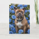 Pictured In A Blue Rose Garden Is A Brown And White Staffy.