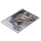 This item displays a photograph of a brown tabby cat resting outdoors.