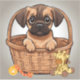 Brown Tan Dachshund Pug Puppy Sitting in Basket