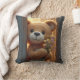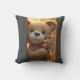 Brown Teddy Bear Holding a Wildflower Bouquet Throw Pillow