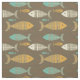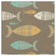 Use this brown vintage kitsch fish fabric for a wide variety of sewing projects. The pattern features a brown background with turquoise, red and yellow skeletal fish that swim with the current.