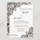 The vintage wedding invitation shows a brown lace imitation. Change the brown fill colour to match the flat card to your wedding colours. Remember to adjust the font colour as well. For customization and design enquiries, please contact https://kbmd3signs.com/contact/.