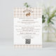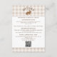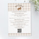 Wedding Enclosure Card featuring Destei's beige gingham background with a white panel bordered in brown at the top and bottom for text and QR code. At the top, a whimsical watercolor hare illustration is centered with a curved, personalizable title above that can read “Details” or any custom heading.