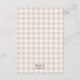 The reverse side continues the beige gingham background and includes two personalizable text areas for the couple’s initials and wedding date, keeping the design cohesive and elegant.