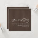Modern Elegant Dark Brown Wedding Invitations with white script text along with modern white font for the wedding invitation information. Invitations have a brown faux paper texture photo printed on both sides for a 3D effect. Design by Elke Clarke © 2010. Customize with your initials, names and wedding invformation text. For added sophistication, choose from a variety of specialty papers as well. Shown on plain white paper.