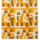 This design showcases a captivating contemporary pattern of geometric circles and squares in dark yellow, light orange, white, and brown. It conveys an ornate, elegant, and stylish vibe, making it ideal for the sophisticated artistic fashionista, trendy fashion diva, popular hip trendsetter, vintage retro art style enthusiast, and lovers of abstract digital geometric motifs. You can find this design available on a variety of attractive home decor items.