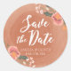Brown Wood and Floral Rustic Save the Date Classic Round Sticker
