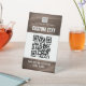 Brown wood grain look custom logo QR code and text Pedestal Sign