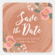 Brown Wood Rustic Floral Save the Date Square Sticker