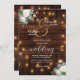 Brown Wood String Lights White Roses Wedding Invitation