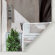 Brown wooden door on white concrete building