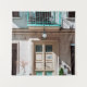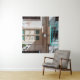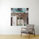 Brown wooden door on white concrete building tapestry