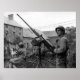 Liberation of Normandy in the summer of 1944 in the American sector. A local assembly solemnly gathered in the courtyard of a farm, under the watchful eye of two GIs, one of which operates this heavy machine gun Browning .50 M2HB. Regional Council of Basse-Normandie / National Archives USA