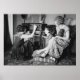 The Brox Sisters (Patricia, Bobbe, Loryane) listening to an antique radio.