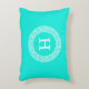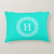 Brt Aqua Wht Greek Key Rnd Frame Initial Monogram Decorative Pillow