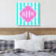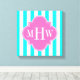 Brt Aqua Wt Stripe HotPink#2 Quatrefoil 3 Monogram Canvas Print